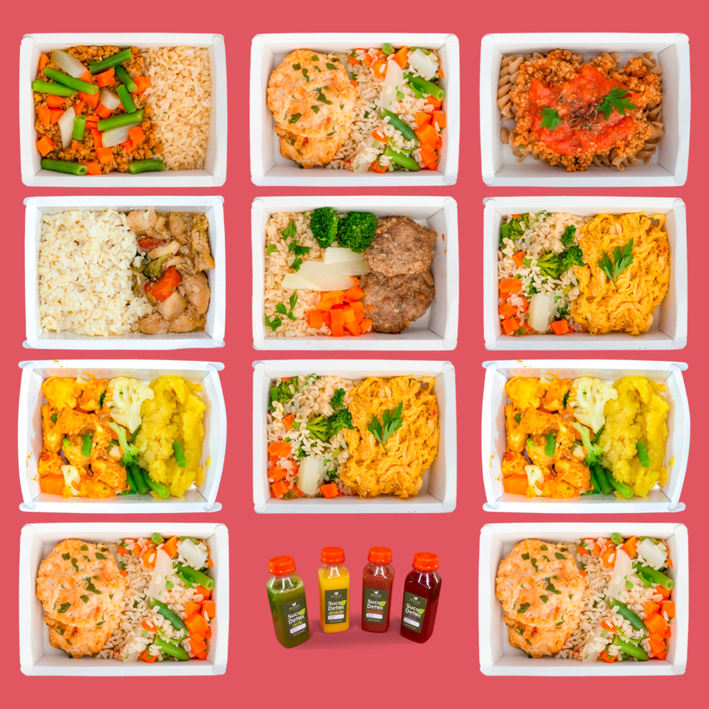 As marmitas são preparadas todos os dias e após a montagem são congeladas em -19ºc, sendo entregues ao cliente congeladas.